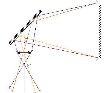 former dans le plan focal objet de l'oculaire. 1/f' = 1/OA'-1/OA. ( O : centre optique de l'oculaire, A : objet , A' : image de A donnée par l'oculaire) si OA= - f' alors 1/OA'= 0 et OA' tend vers l'infini. Le cercle oculaire : c'est l'image de l'objectif ( ici miroir convergent + miroir plan), donnée par l'oculaire.