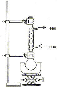L'estérification est lente, athermique, limitée par l'hydrolyse de l'ester. L'acide sulfurique concentré joue le rôle de catalyseur ; il doit être concentré afin d'apporter le moins d'eau possible : l'eau déplaceraît l'équilibre vers la gauche, hydrolyse de l'ester. Le montage à reflux permet d'augmenter la vitesse de la réaction en travaillant à température modérée ( la température est un facteur cinétique). Il évite les pertes de matière : les