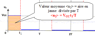 Expression de t1 en fonction de E1, R1, C et E2. u1 =-E1/(R1C) t1 = E2. t1 = - E2R1C / E1. Valeur moyenne <u2> de la tension u2 en fonction de T, t1 et VCC.