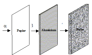 Centrales nucléaires et radioactivité : Chaque atome de matière comprend un noyau [ ]. Parmi les quelques 325 noyaux recensés 51 ont tendance à se modifier spontanément en éjectant une ou plusieurs particules [ ]. Le polonium 210 par exemple, se transforme spontanément en plomb 206. On appelle ces émissions radioactivité [ ] : - la radioactivité a consiste en l'émission d'un noyau d'hélium [ ]. Elle est facilement arrêtée (par une simple feuille de papier). - la radioactivité b consiste en l'émission d'un électron ou d'un positon [ ] : pour l'arrêter, il suffit d'une feuille de plastique ou de l'aluminium. - la radioactivité g est un rayonnement électromagnétique de même nature que la lumière ou que les rayons X. Il est très pénétrant. Il faut pour l'arrêter un écran en plomb ou en béton.