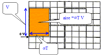 Bobine de lissage d'inductance L suffisamment élevée pour obtenir un courant i = I = constant. Valeur de la tension V fournie par la batterie : 4,8 divisions correspondent à