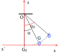 Ce pendule est constitué du mobile à coussin d'air de masse m=0,236 kg, adapté à la table, suspendu à l'extrémité d'un fil inextensible et de masse négligeable devant celle du mobile. L'autre extrémité du fil est accrochée en un point fixe O. Ce pendule est assimilé à un pendule simple de longueur L=OG= OG0=0,41 m.
