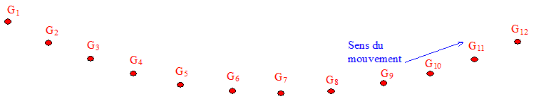On enregistre les positions du centre d'inertie G du mobile toutes les 30 ms. On note t= 30 ms.