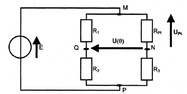 La sonde Pt100 ( symbolysée par le conducteur ohmique de résistance RPt) est insérée dans le montage suivant :