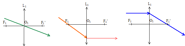 Le rayon émergent de L1 étant parallèle à l'axe optique, la direction du rayon incident sur L1 est :