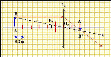 Conditions de Gauss d'obtention de bonnes images : - objet de petites dimensions placé au voisinage de l'axe optique principal - éliminer (utiliser un diaphragme) les rayons lumineux trop inclinés sur l'axe optique principal. II. lentille L2 : Détermination graphique :
