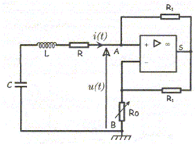v(t) + R i(t) + Ldi(t) /dt-R0i =0 si R = R0 : v(t) + Ldi(t) /dt = 0 ( éq. différentielle de l'oscillateur libres non amorti) La puissance instantanée mis en jeu dans le dipôle RLC est dissipée dans le conducteur ohmique R : p = R i2(t) A chaque instant les alimentations de l'amplificateur opérationnel fournissent au dipôle RLC la puissance R i2(t) et compensent ainsi la puissance perdue par effet Joule.