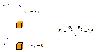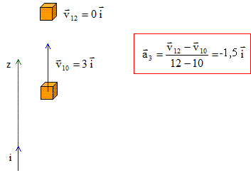 Le vecteur accélération est vertical, vers le haut, valeur 1,5 m/s2. Phase 2 : mouvement rectiligne uniforme :