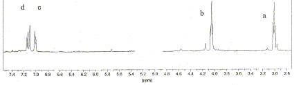 Les hydrogènes échangeables ne sont pas liés de manière stable à une molécule ; ils sont en équilibre avec les hydrogènes du solvant. Les protons liés à des groupes amines et hydroxy sont des protons échangeables. Un pH trop élevé accélère léchange des protons échangeables avec le solvant : le solvant utilisé a des propriètés basiques. La réaction correspondant à l'échange de protons hydroxyliques est une réaction acide base. Triplet à 3 ppm, ( la courbe d'intégration indique deux protons) : -CH2-F ( F noyau benzénique) Triplet à 4 ppm, ( la courbe d'intégration indique deux protons) : -CH2-OH. singulet à 7,1 ppm : proton aromatique sans proton en position a. Doublets à 7 ( en a du CH2-) et 7,2 ppm : deux protons aromatiques situés en a l'un de l'autre . donc structure C. Exercice
