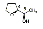 carbone asymétrique : carbone tétragonal lié à 4 groupes différents. La présence d'un carbone asymétrique indique qu'une molécule est chirale. B possède un carbone asymétrique ( celui porteur du groupe OH) : B est chirale. D possède un carbone asymétrique ( celui porteur du groupe OMe) : D est chirale. E possède un carbone asymétrique : E est chirale. F possède deux carbones asymétriques : F est chirale. Donnez la configuration absolue des atomes de carbone 4 et 5 en indiquant l'ordre de priorité pour chaque carbone.