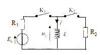 A- L'intensité initiale est nulle. Vrai. La bobine s'oppose à l'établissement du courant à la fermeture de K1. B- La tenion finale aux bornes de la bobine est nulle. Vrai. uL= Ldi/dt ; uL(T) = L[di/dt ]T ; en régime permanent [di/dt ]T =0. A partir de t=T, K1 est ouvert et K2 est fermé. C- L'intensité à la date t = T+est nulle. Faux. A t =T+ , I(T)=I(T+)= E0/R1. Continuité de l'intensité. D- La tension aux bornes de la bobine est nulle à la date t=T+. Faux. Discontinuité de la tension aux bornes de la bobine : uL(T+) + R2I(T+) = 0 ; uL(T+) =- R2I(T+) = - R2E0/R1. E-La constante de temps du circuit entre [0 ; T) est la même qu'à t >T . Faux. t1 = L/R1 et t2 = L/R2 avec R1différent de R2.