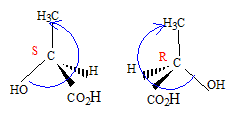 Acide 2-amino-3-hydroxobutanoïque ; acide 2-hydroxopropanoïque. L'acide lactique possède un carbone asymétrique : il en résulte deux énantiomères qui peuvent être différenciés par leur propriété optique.