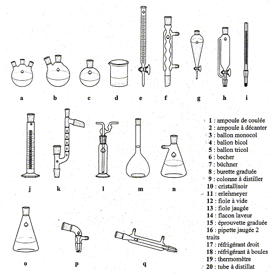éléments de verrerie notés de a