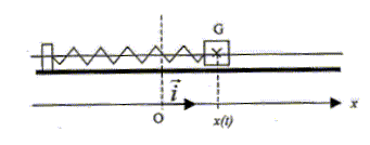 Les frottements sont négligés dans cette partie. Un système solide-ressort est constitué d'un solide de masse m=100 g mobile sur un support horizontal et fixé à l'extrémité d'un ressort à spires non jointives, de masse négligeable et de constante de raideur k =4 N/m. Le solide est mis en mouvement en le déplaçant de sa position d'équilibre, position pour laquelle l'abscisse x du centre d'inertie G est nulle.