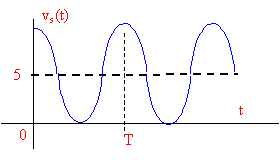 valeur moyenne <vs(t)> : La valeur moyenne de cos (2wt) est nulle ; la valeur moyenne de vs(t) vaut : <vs(t) > = 5 V.