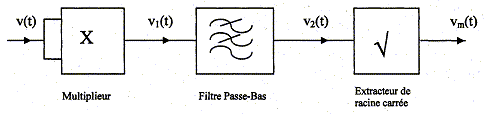 On rappelle que : v1(t) = kv2(t) ; v2(t) = <v1(t)> ; vm(t) = [v2(t)/k]½ ; k = 0,1 V-1. Montrer que vm(t) = [<v(t)>]½. réponse : vm(t) = [v2(t)/k]½ =[<v1(t)> / k]½=[<v2(t)>]½ vm(t) =