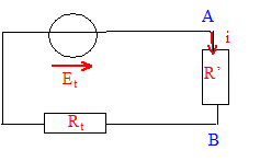 Théorème du générateur équivalent : Thévenin : Un circuit linéaire peut être remplacé par un générateur de tension idéal en série avec une résistance Rt. La fem Et du générateur est égale à la tension mesurée entre A et B quand le dipôle DAB=R' est débranché. La résistance Rt est égale à la résistance mesurée entre A et B quand le dipôle DAB=R' est débranché ; les générateurs sont remplacés par leurs résistances internes. Norton : Un circuit linéaire peut être remplacé par un générateur de courant idéal en parallèle avec une résistance Rn. L'intensité In du générateur est égale à l'intensité du courant de court-circuit entre A et B quand le dipôle DAB=R' est débranché. La résistance Rt est égale à la résistance mesurée entre A et B quand le dipôle DAB=R' est débranché ; les générateurs sont remplacés par leurs résistances internes.
