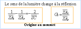 miroir concave convergent Caractéristiques de l'image A'B' d'un objet AB réel mesurant 1 cm, situé à 1 m du sommet, donnée par un miroir sphérique concave ( R=4 m) (