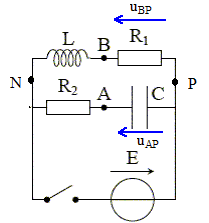 Que peut-on dire de l'état du circuit ( bobine et condensateur ) juste avant la fermeture de l'interrupteur. Justifier. Le condensateur est déchargé ( tension nulle à ces bornes). La bobine ne stocke aucune énergie : l'intensité du courant est nulle. Lors des échanges d'énergie entre condensateur et bobine, l'énergie stockée par le condensateur et la bobine est dissipée par effet joule dans les résistors R1 et R2. Déterminer l'intensité i(t) du courant qui traverse le générateur. On note avec l'indice 1 l'intensité qui traverse la branche contenant la bobine, avec l'indice 2 celle qui traverse la branche contenant le condensateur, i celle traversant le générateur. Additivité des intensités : i = i1 + i2.