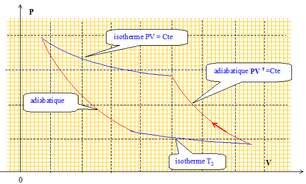 On suppose dans un premier temps que le cycle comprend les transformations réversibles suivantes : compression adiabatique de T2 à T1 , compression isotherme à T1 , détente adiabatique de T1 à T2, détente isotherme à T2. Tracer l'allure du cycle dans un diagramme (P V).