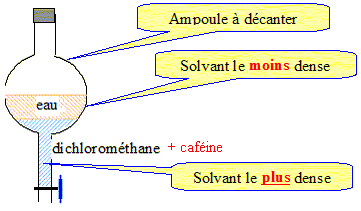 Le distillat contient de la caféine en solution dans l'eau. La caféine doit être extraite à l'aide d'un solvant.