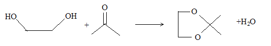 Dans un cas général, la réaction de formation dun acétal à partir dune mole d'acétone et de deux moles dalcool ROH est une réaction équilibrée peu en faveur de lacétal ; dans le cas ci-dessus (formation dun acétal cyclique) léquilibre est beaucoup plus en faveur de lacétal. Pour déplacer