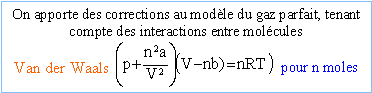 molécules. (P+an²/V²)(V-nb) = nRT ; PV + an²/V-Pnb-abn3/V² = nRT ; PV = nRT-an²/V + Pnb+abn3/V² voisin de : nRT-an²/V + Pnb H voisin de
