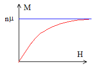 M(T,H)= nmB(P+ -P-)= nmBA[exp[mBm0H / (kT)]-exp[-mBm0H / (kT)] ] = nmB A[2 sh[mBm0H / (kT)]] M(T,H)=nmB [2 sh[mBm0H / (kT)]] / [2 ch[mBm0H / (kT)]] = nmB th[mBm0H / (kT)] Expression de la