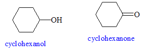 Préparer 120 mL dune solution dions hypochlorite à partir de 50,0 mL deau de Javel de concentration égale à C2 = 2,11 mol.L-1et 70,0 mL deau. Introduire dans un erlenmeyer 10,0 g de cyclohexanol puis 5,0 mL dacide éthanoïque pur. Ajouter sous agitation magnétique et goutte à goutte les 120 mL de la solution dhypochlorite de sodium préparée précédemment. On veillera à ce que la température ne dépasse pas 40°C. Laisser le mélange sous agitation pendant 10 minutes pour assurer une réaction totale. Vérifier que le test au papier Kl/amidon est positif (coloration) On vérifie ainsi l'excès de ClO- ; ce dernier oxyde l'ion iodure en diiode. Ajouter quelques gouttes dune solution saturée dhydrogénosulfite de sodium NaHSO3 puis vérifier que le test au papier Kl/amidon est négatif (absence de coloration). On vérifie ainsi l'absence de ClO- ; ce dernier a été réduit en ion chlorure par HSO3-. Ajouter une quantité suffisante de carbonate de sodium afin d'éliminer l'acide éthanoïque ( réaction acide base) : on observe un dégagement de CO2. On réalise lhydrodistillation du mélange jusquà obtenir 50 mL de distillat constitué de deux phases. La phase essentiellement constituée de cyclohexanone est extraite deux fois avec 10 mL déther diéthylique. La phase organique est séchée, puis le solvant est éliminé par évaporateur rotatif. La cyclohexanone est finalement purifiée par distillation. On obtient 6,8 g de cyclohexanone. Identification des réactifs : Sur la paillasse de travail se trouvent trois flacons notés A, B, C dans lesquels se trouvent léthanol, la cyclohexanone et le cyclohexanol. Lopérateur réalise des tests et reporte les résultats dans le tableau ci-dessous.