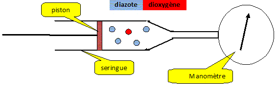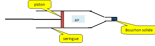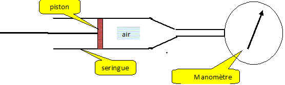 Volume et masse de l'air : l'air a-t-il un volume propre ? A-t-il une masse ? L'état gazeux est un des états de la matière. Un gaz est compressible. Le piston peut être pousser de quelques centimètres : l'air est comprimé. Le piston peut être tirer vers la gauche de quelques centimètres : l'air est détendu. En relachant le piston, il reprend sa position initiale : l'air est élastique L'unité de pression
