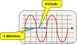 4 divisions correspondent à 4*10 = 40 ms. C- la fréquence vaut f=0,025 Hz . Faux. période T = 0,04 s ; fréquence f = 1/T = 1/0,04 = 25 Hz.