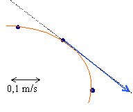 Le pointB est animé d'un mouvement rectiligne uniforme (distance et durées proportionnelles) : c'est le centre d'inertie du palet. Pour un observateur placé en B, le point A décrit une trajectoire circulaire. |