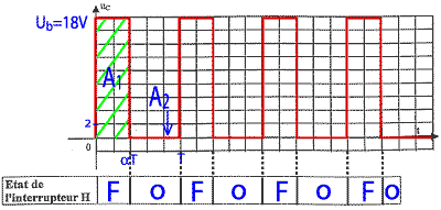 < uC > = (A1+A2) / T = (uB*aT+0) /T = uB*a = 18*0,4 = 7,2 V. On peut mesurer