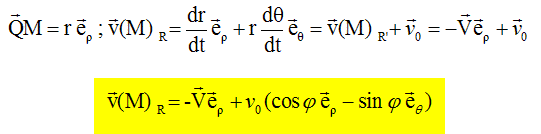 Quelle est la trajectoire du chien ? R : référentiel lié à la berge de la rivière, associé aux coordonnées polaires er et eq. R' : référentiel lié au chien.