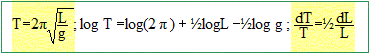 Analyse : Quelle est la variation relative ( %) de la période si la longueur varie de 2 % ? DT/T = 0,5 D L/L avec D L/L= 0,02 DT/T = 0,5*0,02 = 0,01 ou 1 %.
